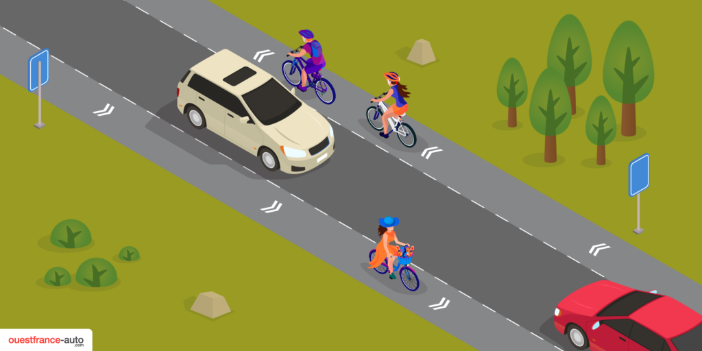 Grâce à une voie centrale pour les voitures et deux bandes latérales réservées aux cyclistes, ce type d’aménagement favorise une cohabitation apaisée entre tous les usagers.